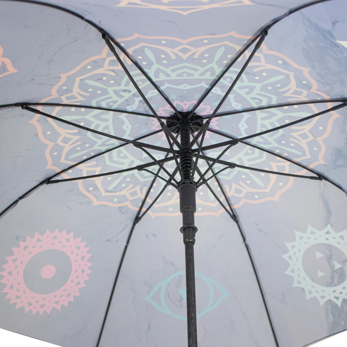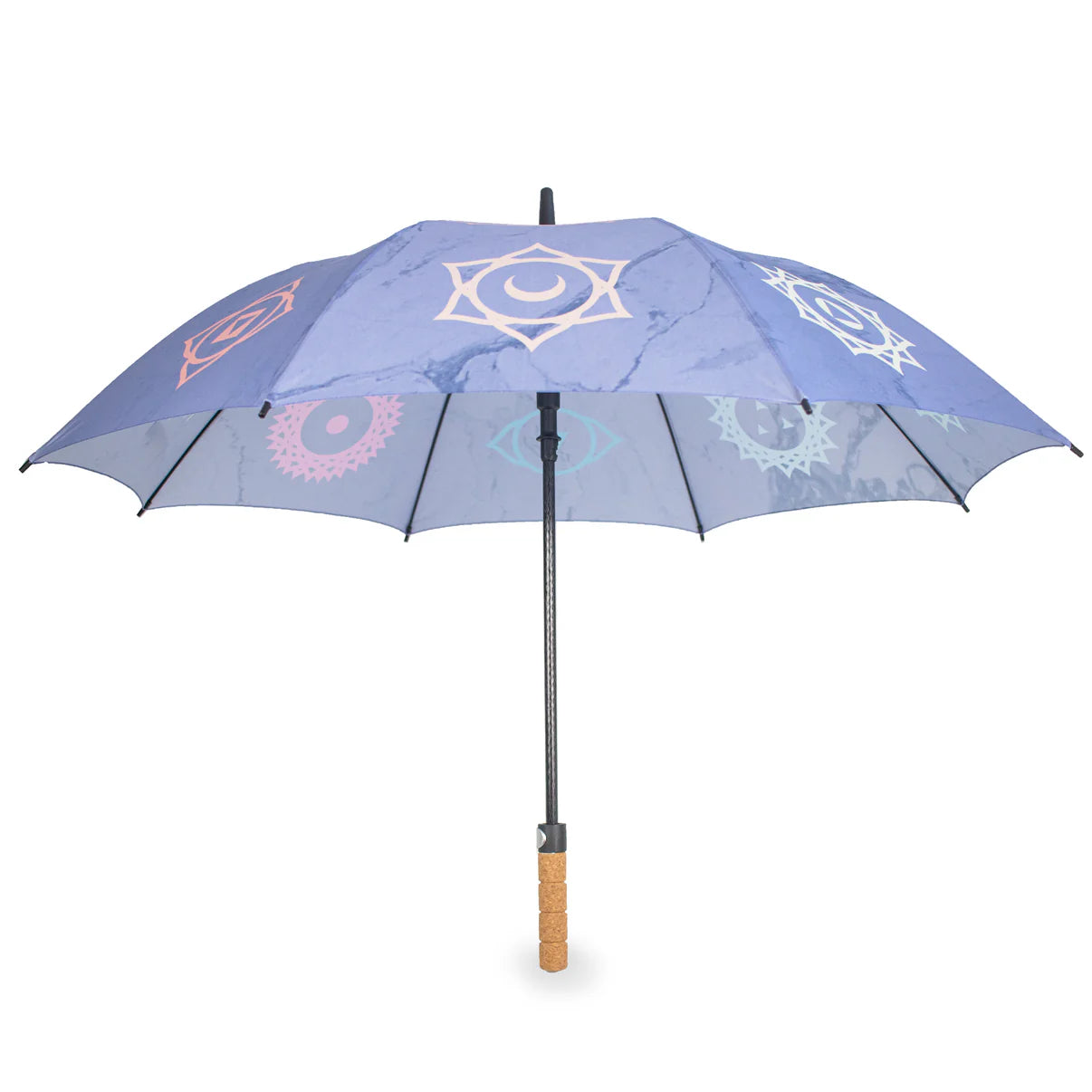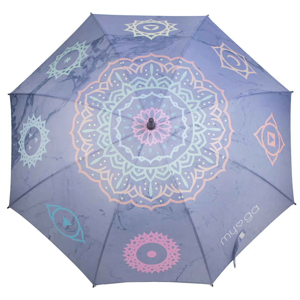Sin importar el clima, con nuestros paraguas Myga estarás protegido. Los paraguas son importantes en muchos rituales y religiones de diversas culturas, ya que nos protegen tanto de la lluvia como del sol. Ligero y duradero, este hermoso paraguas presenta un impresionante diseño de Chakra y un mango de corcho natural con agarre para una sujeción firme. La apertura mediante botón permite un uso rápido y sencillo, y la amplia cubierta de pongee permite que dos personas se sienten cómodamente debajo.