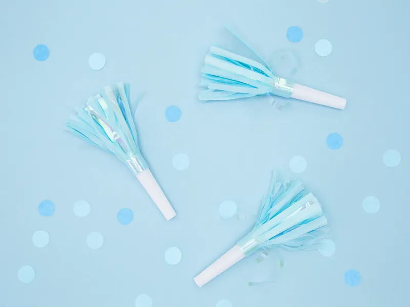 Trompetas de fiesta, azul celeste