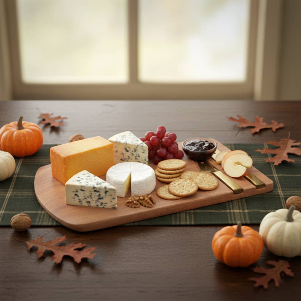 Tabla de queso de madera con 2 cuchillos