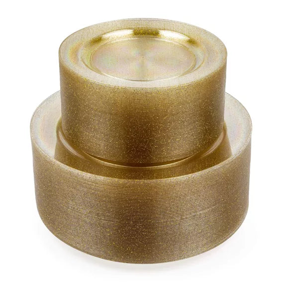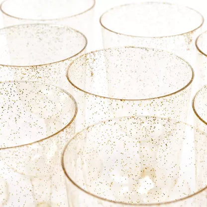 Vaso de plástico multiusos con purpurina dorada (275ml)