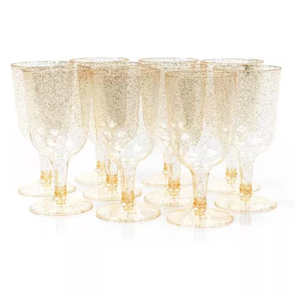 Copa de vino de plástico multiusos con purpurina dorada (150 ml)