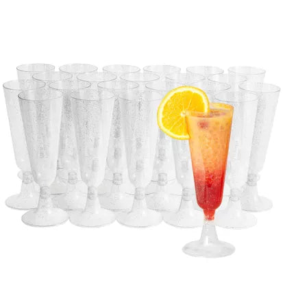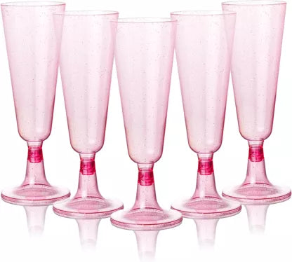 Copa de champán de plástico rosa con purpurina (150 ml)
