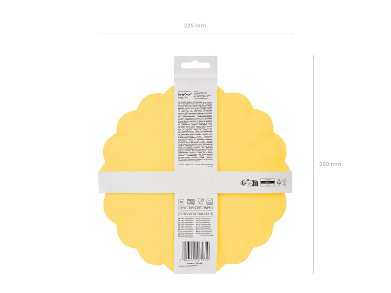 Platos de plástico Frill, 22 x 22 cm, amarillos.